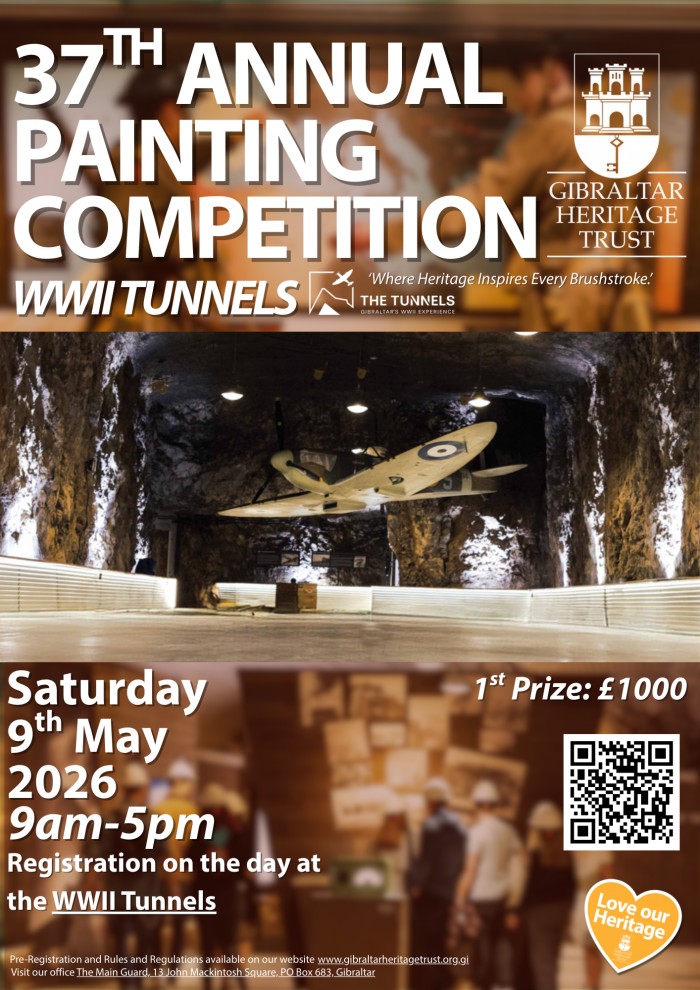The Gibraltar Heritage Trust will be holding its 37th Annual Painting Competition on Saturday 9th May 2026 on this year’s theme the ‘WWII Tunnels’. The Trust is proud to collaborate with Wright Tech Media and invite artists to the Tunnels, Gibraltar’s WWII experience. Participants will have the opportunity to work inside the tunnels themselves, and we feel they offer a dramatic backdrop that promises to inspire artists with bold interpretations and unique perspectives of a compelling part of Gibraltar’s history. The Trust hopes this year’s theme will challenge artists to explore the site, whilst also drawing attention to the importance of preserving Gibraltar’s built heritage.